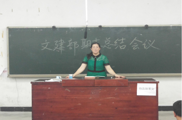 为总结本学期文建工作,努力将文建工作越做越好,6月27日晚上8点,文建部在致远楼120教室组织召开了文建部期末总结会议,校文建部学生全体干部以及各院部负责人参加了此次会议。学工处刘红燃副处长,曹宇科长,梁琼老师和丁友坤老师四位老师出席本次会议,会议由办公室干事程文进,丘卓辉主持。