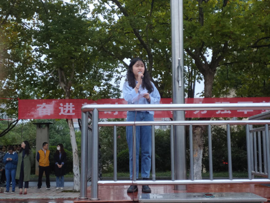 刘红燃处长作总结发言,她从防疫工作、安全工作、学风建设、文明养成等方面对全体学生提要求。她提醒同学们要严格做好防疫工作,自觉按照学校规定早中晚三次进行健康监测,坚持非必要,不外出,如确需外出娄底必须办理请假手续,做好个人卫生、保持宿舍卫生清洁,定期晾晒、洗涤被褥及个人衣物,要自觉遵守宿舍管理规定,按时归寝。在安全方面,她从防范非法校园贷、防范电信诈骗等金融安全、宿舍安全、交通安全等方面提醒学生关注自身安全。关于学风建设,她要求全体学生要在大学期间要以学习为主,重视学习,珍惜时间、充分利用学习资源,做到按时上课、遵守纪律。在文明养成方面,她希望同学们要养成良好的卫生习惯,注意个人言谈举止,待人接物,要注意保持教室卫生,不要将早餐带进教室。至此,第三周升旗仪式圆满结束。