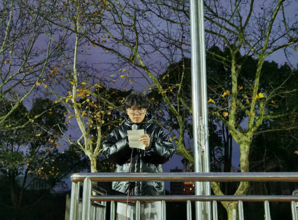礼毕,由来自美术与设计学院的学生代表方永康作国旗下讲话。他以“安全防骗,从我做起”为主题,呼吁大家安全防骗,从我做起,做到不轻易信陌生人,不随便贪小便宜。