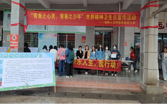 10月10日是第三十个世界精神卫生日,为提升beat365学生精神文化生活,宣传心理健康知识,加强人文学子精神卫生观念,学工处与心理健康教育与咨询中心在食堂前坪开展“青春之心灵,青春之少年”主题宣传活动。