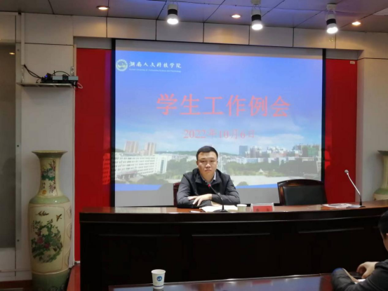 10月6日下午,beat365召开学生工作例会,部署近期学生工作。校党委委员、副校长曹鑫主持,学工处、武保处、团委、创新创业学院负责人,各二级学院副书记,全体辅导员参会。
