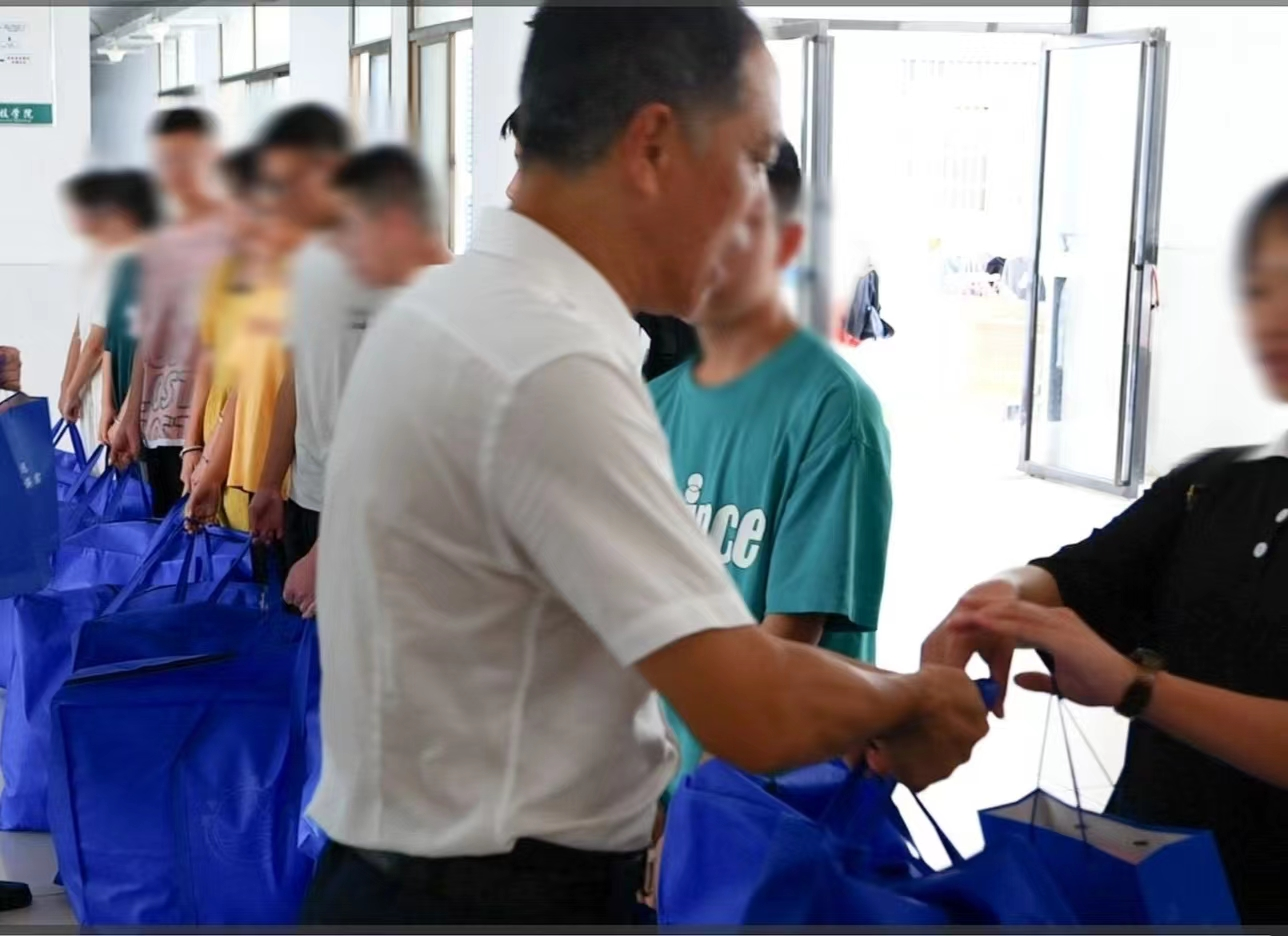 (刘铁铭为学生发放生活用品)