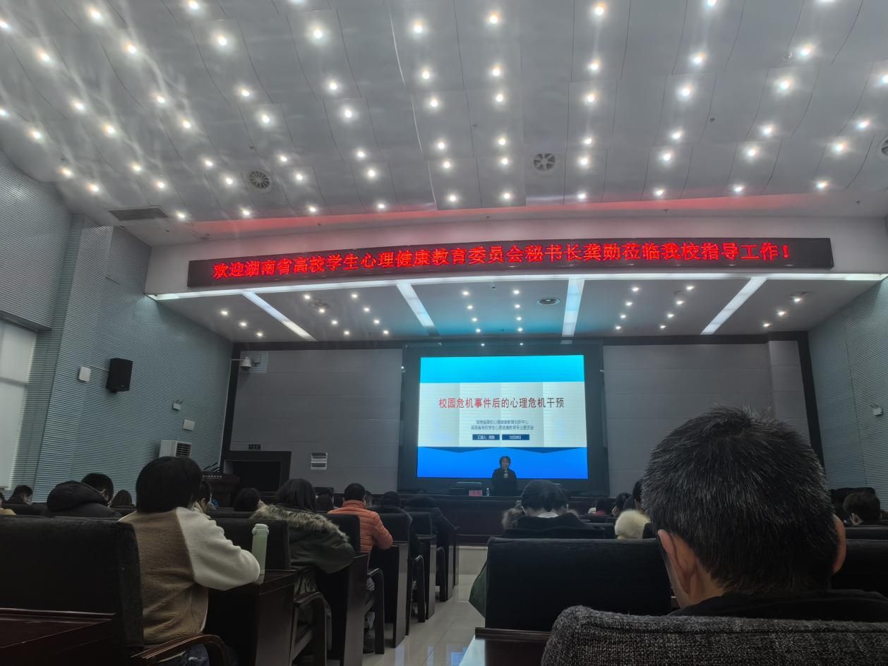 12月28日,“校园危机事件后的心理危机干预”培训在beat365图书馆二会议室顺利开展。此次培训由长沙理工大学心理健康教育中心主任、副教授,中国心理学会注册督导师、注册心理师,湖南省高校学生心理健康教育专业委员会秘书长龚勋主讲,学工处副处长谢四元主持,全体心理健康教育专职教师、全体辅导员参与。