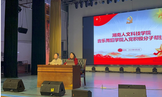 为把好大学生党员发展的入口关、质量关,进一步提高学生入党积极分子的政治觉悟、树立坚定理想信念,2023年3月2日,音乐舞蹈学院党总支在音乐厅启动新学期入党积极分子帮扶活动,学院党总支书记刘纲华、副书记邓莉立、学生第二党支部书记朱燕聪、学生第三党支部书记唐太文以及全体在校学生正式党员、预备党员、入党积极分子参加。活动由唐太文主持。