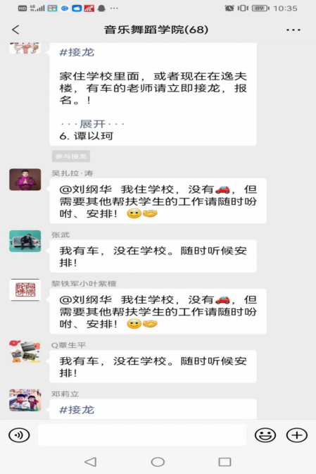 (老师们都在向学院报备全力帮助接送学生)