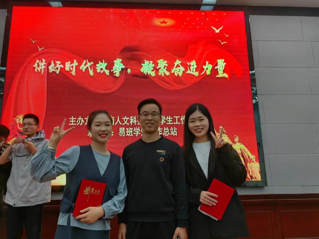 2022年11月21日,为传承红色基因,传播时代新声,展现当代大学生的精神面貌,音乐舞蹈学院选送的2位选手陈莉和颜晓龙参加学校学工处举办的“讲好时代故事,凝聚奋进力量”演讲比赛,并获得“三等奖”。
