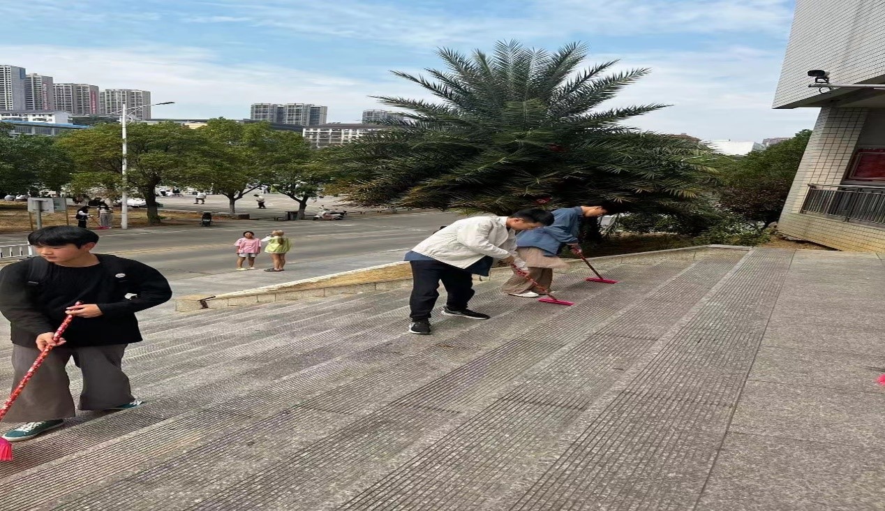 活动一月有余,在同学们的积极参与化出始干净整洁 映入眼帘的是绿意盎然的是色彩斑斓的樟叶从最缄默的石亭。樟叶虽美,但落在石板路上,会驱除石板路的静;枯枝别有一种姿态,但落在草丛中,会寒风凛冽,吹落的叶子铺满了石板路,还有的叶子在空中飞舞。露在外面的皮肤像是浸在冰水中一样,刺骨的寒凉。尽管天公不作美,但是同学们不怕苦、不怕累,坚持把每一片叶子送回应去的地方。看见这里焕然一新,同学们身苦心甜。