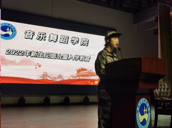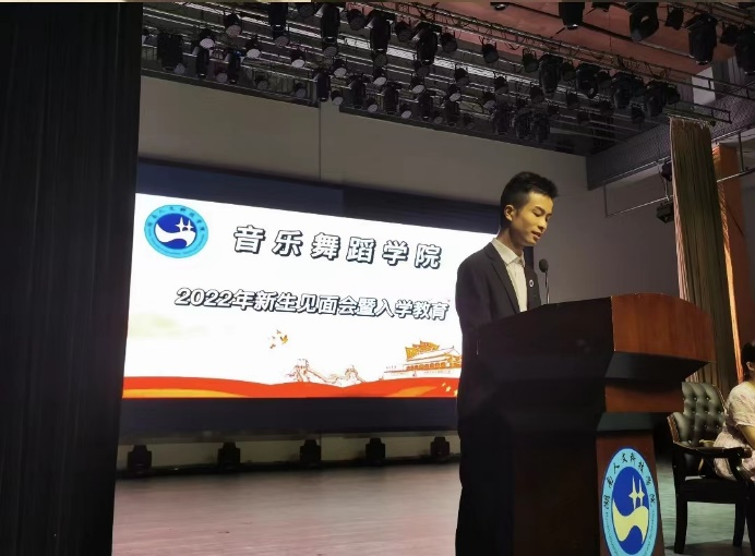 首先,周院长对2022级新生加入音舞院表示欢迎和祝贺。希望新生们把学习视为首要任务,勤于学习、善于思考、敏于求索。在大学新赛道里,不负韶华,把思想道德立起来,把专业知识强起来,学有所获、学有所成。努力成为德艺双馨的艺术家和艺术教育工作者,在为祖国、为民族、为人民的不懈奋斗中绽放绚丽之花。