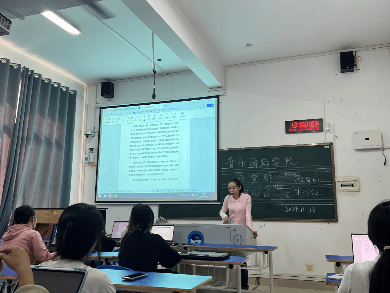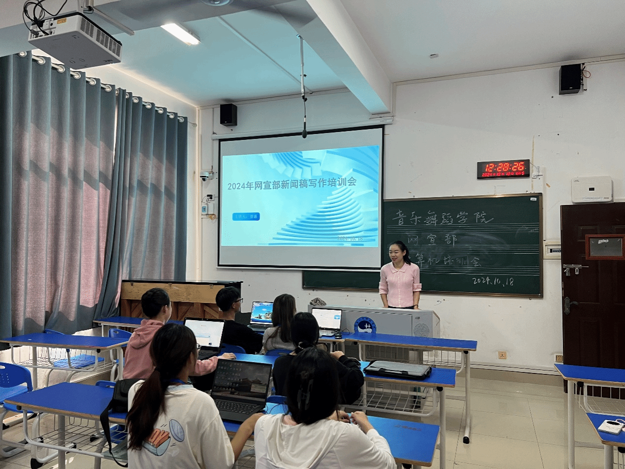 为提升同学们的拍照技巧和文字表达能力,更好地用文字和镜头展现学院风采,进一步培养全面发展的高素质人才,音乐舞蹈学院于2024年10月18日在逸夫楼开展了“新闻妙笔,赋能未来”新闻稿培训会。本次培训面向网宣部全体成员,为同学们传授新闻稿写作技巧及拍摄经验。