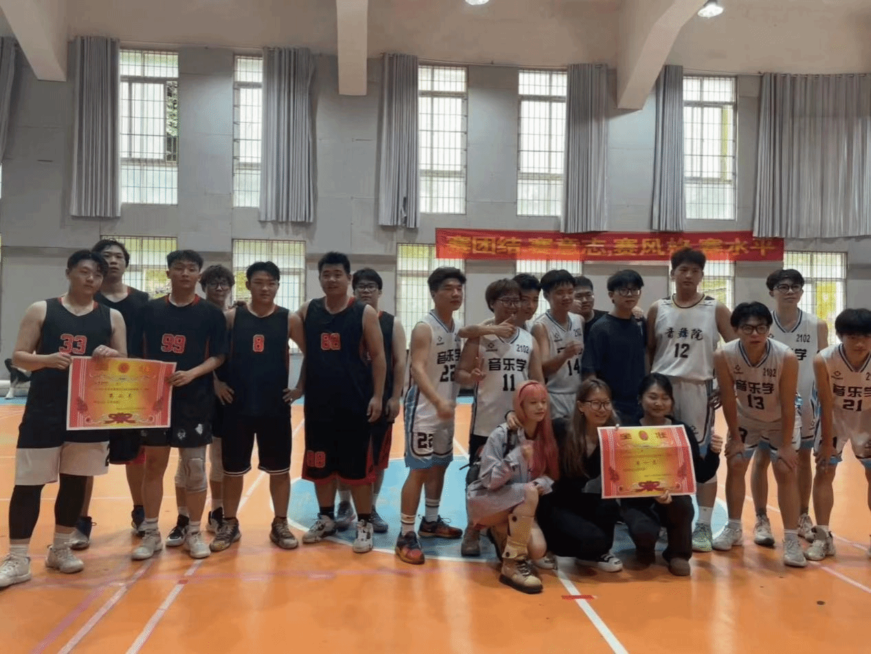 比赛中,各参赛队伍全力以赴,球员们运球娴熟、传球精准、投篮奋力,快攻时风驰电掣,阵地战配合巧妙,尽显高超球技与团队协作精神,为团队荣誉奋力拼抢。现场观众热情高涨,为支持队伍呐喊。精彩进球或防守时,欢呼声、掌声不断,感染着球员更努力拼搏。激烈角逐后,冠、亚、季军诞生。颁奖仪式上,音乐舞蹈学院领导为获奖队伍颁奖,盛赞其出色表现。获奖球员手捧奖杯,笑容自豪喜悦。