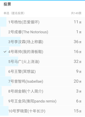 附件:参赛者,所唱歌曲,得票