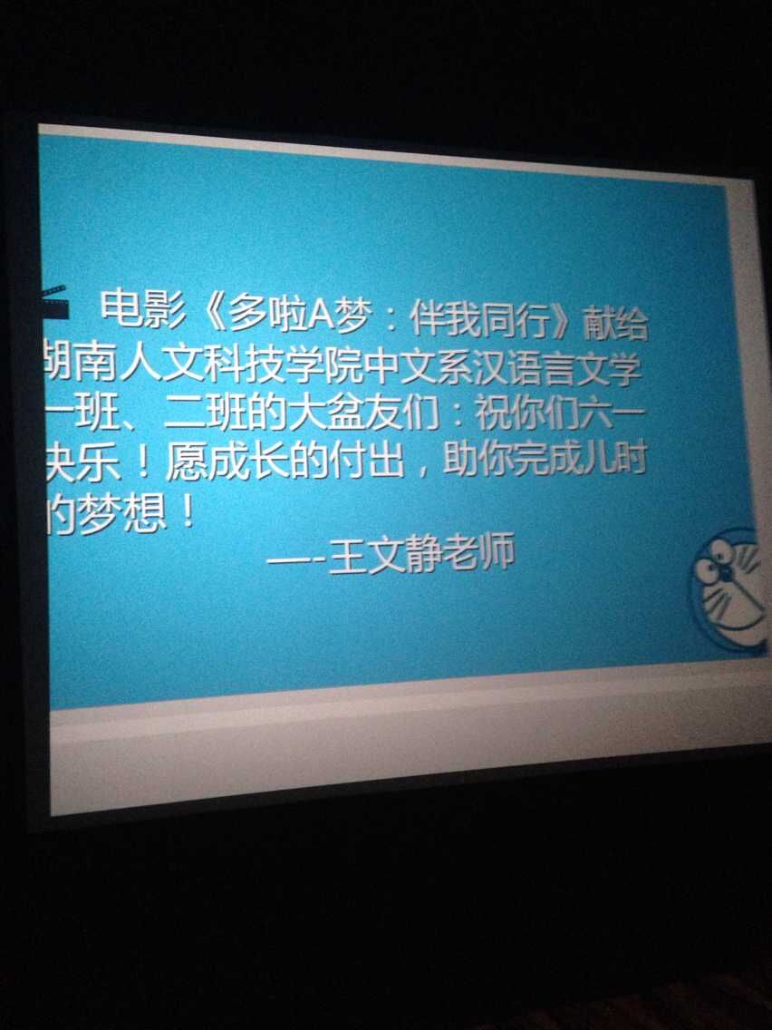 6月1日晚,中文系14级汉语言文学一班、二班在娄底中影万泉国际影城包场观看电影《哆啦A梦·伴我同行》,本次活动由中文系辅导员、14级汉文一、二班班主任王文静老师组织并全程参与,共计88名同学参加了此次活动。