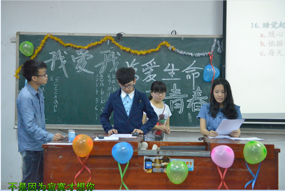 在欢笑声中我们进入了较为悲情的环节“心理案例分析”,以视频的形式观看各大高校出现的案例,震撼了在场所有的人的心,包括南华大学学生发帖赴死、中山大学学术帝自缢、苏州大学情侣跳楼殉情、怀化学院舞蹈系女子被捅身亡等案例。引发上述案例的原因基本涵盖大学生就业难、感情纠纷、心理脆弱、冷漠的社会文化氛围、压力导致精神抑郁等等。在主持人的简明分析后,在场的同学们积极发言,讲出自己内心的想法,也明白了心理健康教育的重要性,在上述案例中深受启发。