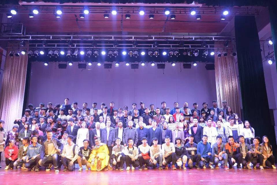 晚会结束,学生处领导、两个学院领导与演员代表合影纪念。
