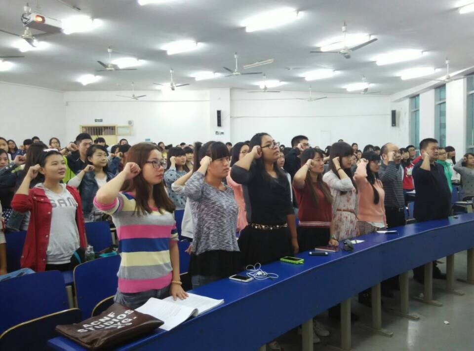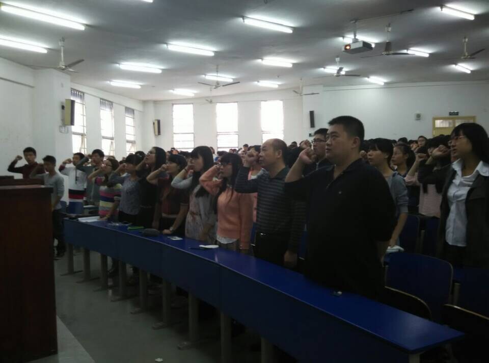 中文系的领导老师带领大家宣誓