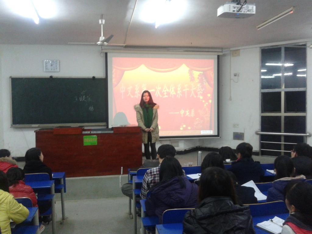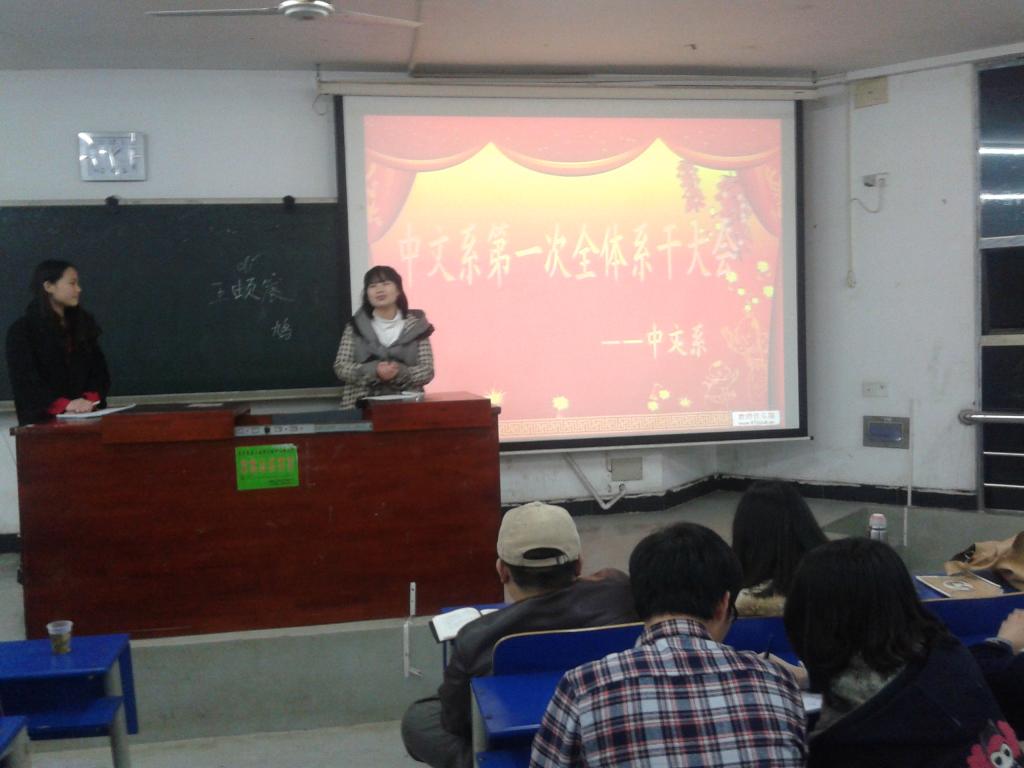 2月27日晚,中文系举行2013年度第一次系干大会,参加本次会议的有辅导员牛津、叶红、何娟三位老师及中文系全体系干,会议总结了上学期的工作并对接下来的工作做了初步安排。
