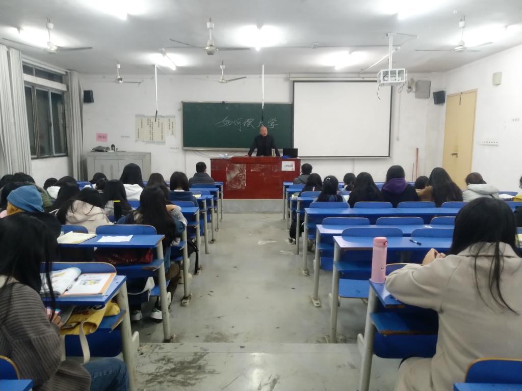 2018年11月19日晚上7点30,秘书学专业负责人张峰老师为文学院秘书学专业18级两个班的学生做了一场题为《如何读大学》的讲座。