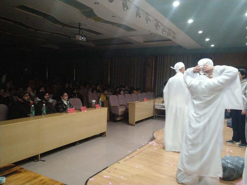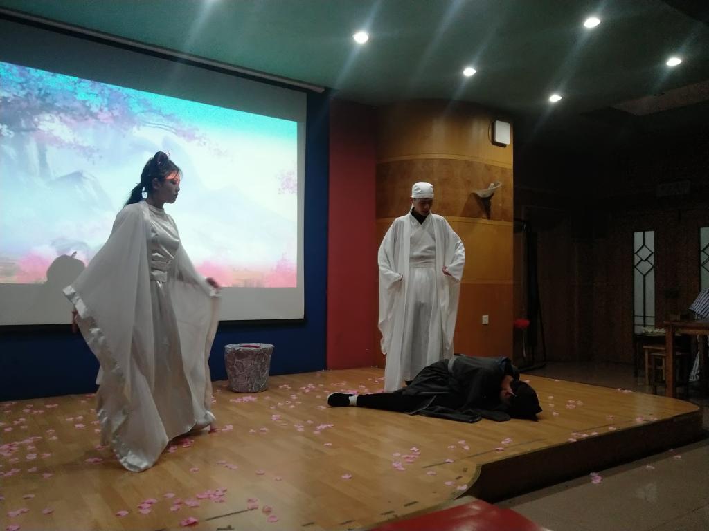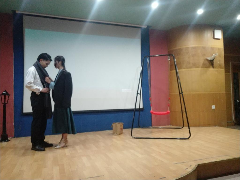 2019年12月20日晚,文学院秘书学专业第二届课堂剧展演,19级两个班的学生初生牛犊不怕虎,锐气逼人,在养根楼报告厅倾情为大家奉献了一场视听的盛宴。秘书学专业2018、2019级全体学生和2017级部分学生现场观摩了演出。两名巴基斯坦留学生也来到了现场,兴致勃勃地看完了演出。